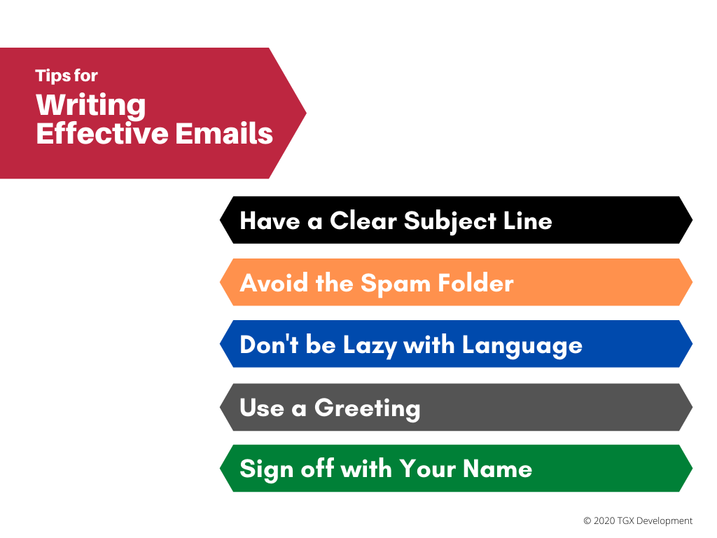 Because e-mails are short in length, it’s often assumed that drafting an effective e-mail requires no skill. The truth is that new users of e-mail often make mistakes when writing messages because they are unaware of best practices. The following five (5) tips will help you adopt effective e-mail strategies as you become a more skilled user.